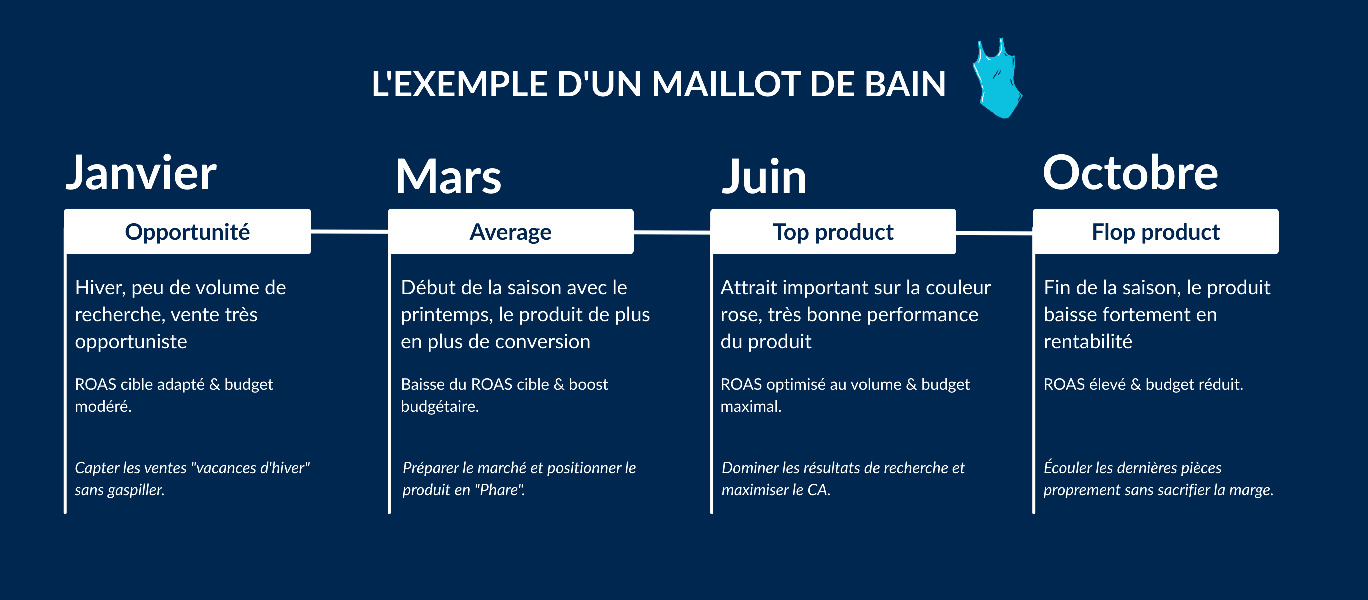 L’un des apprentissages majeurs est que l’entreprise a pu atteindre le même niveau de ROAS (autour de 7) tout en gérant une hausse de 169% des dépenses PMax.